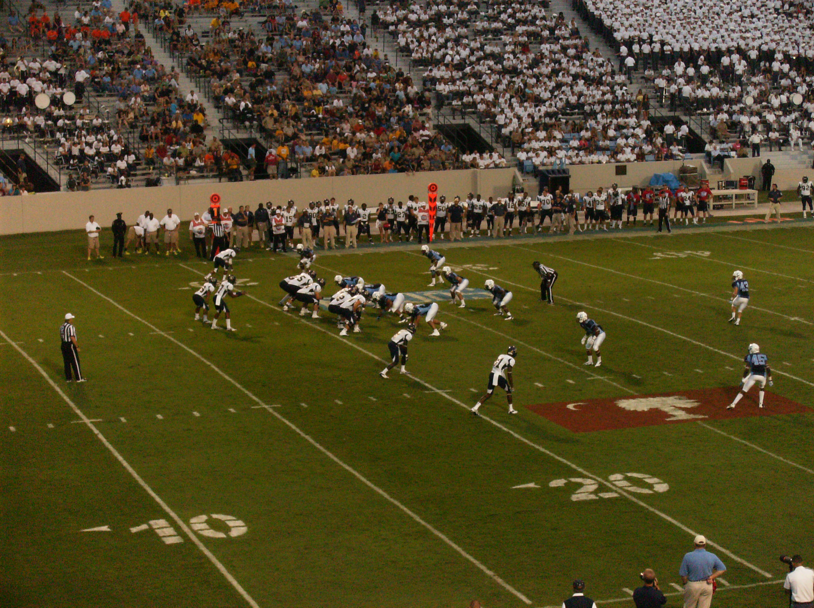 I’m sitting in the stands, waiting for our band to play something, and in the meantime the UTC band is playing its little choo-choo number every chance it gets between plays, along with that Pitbull song which should have been declared illegal by now.
