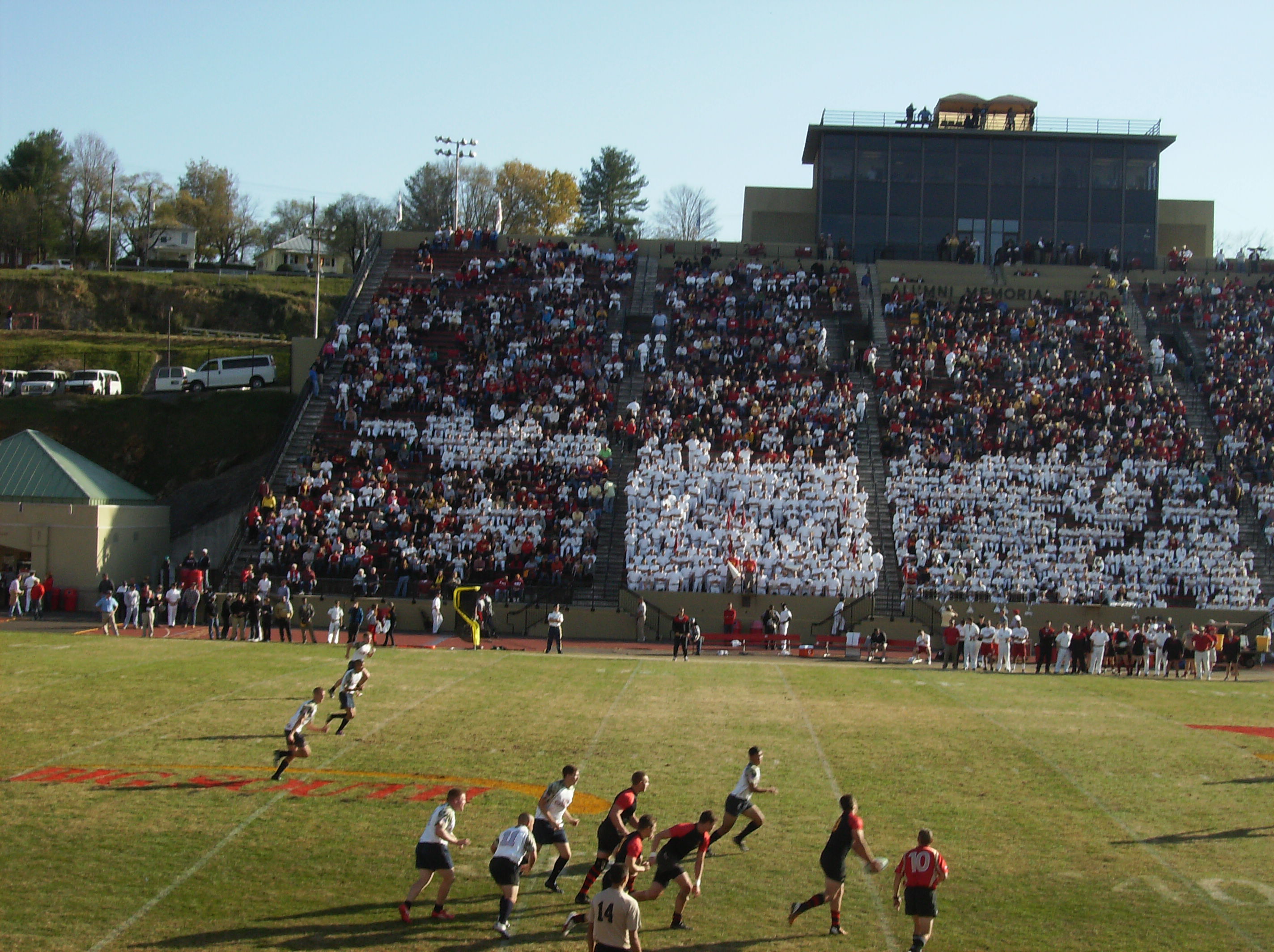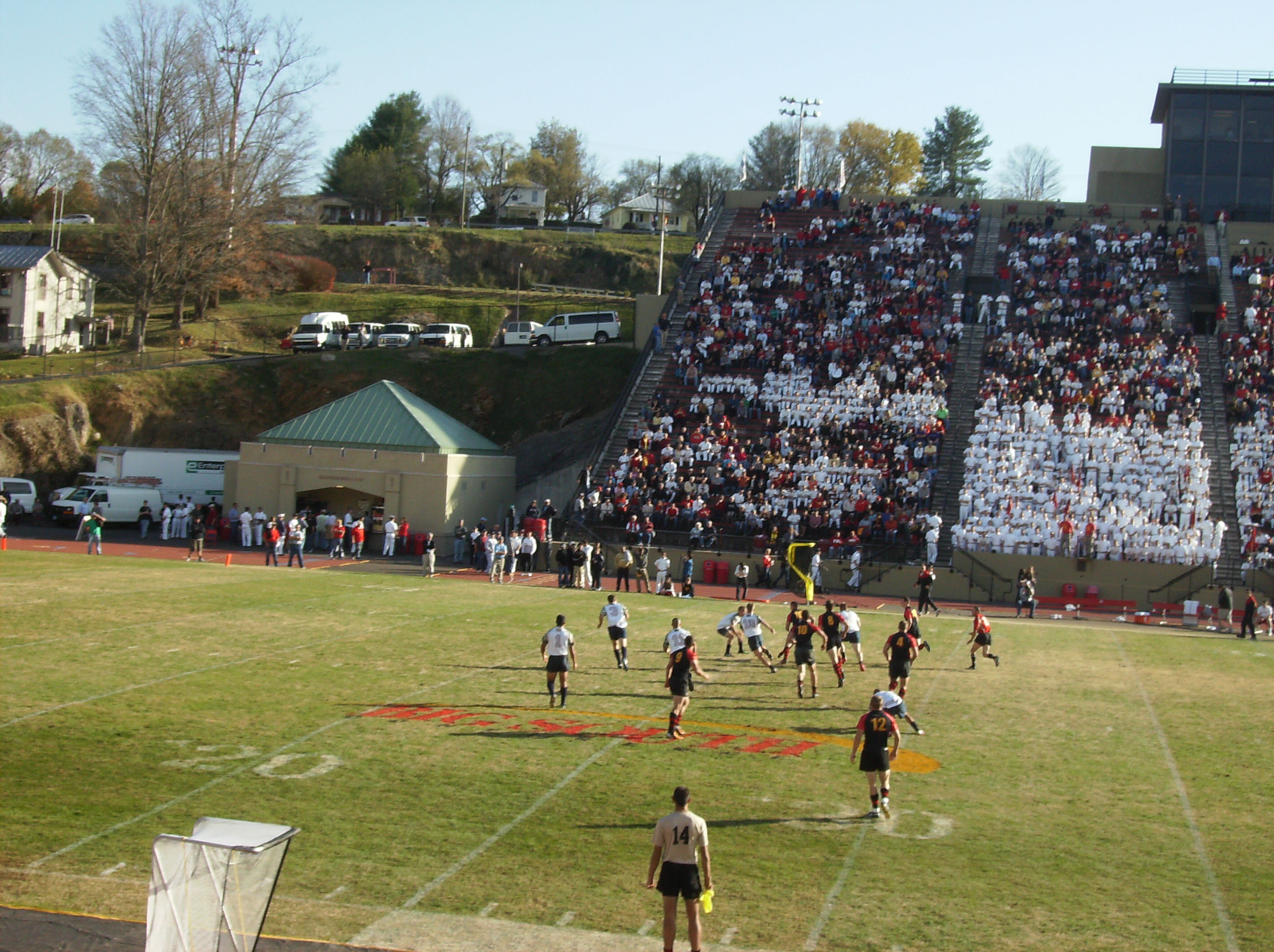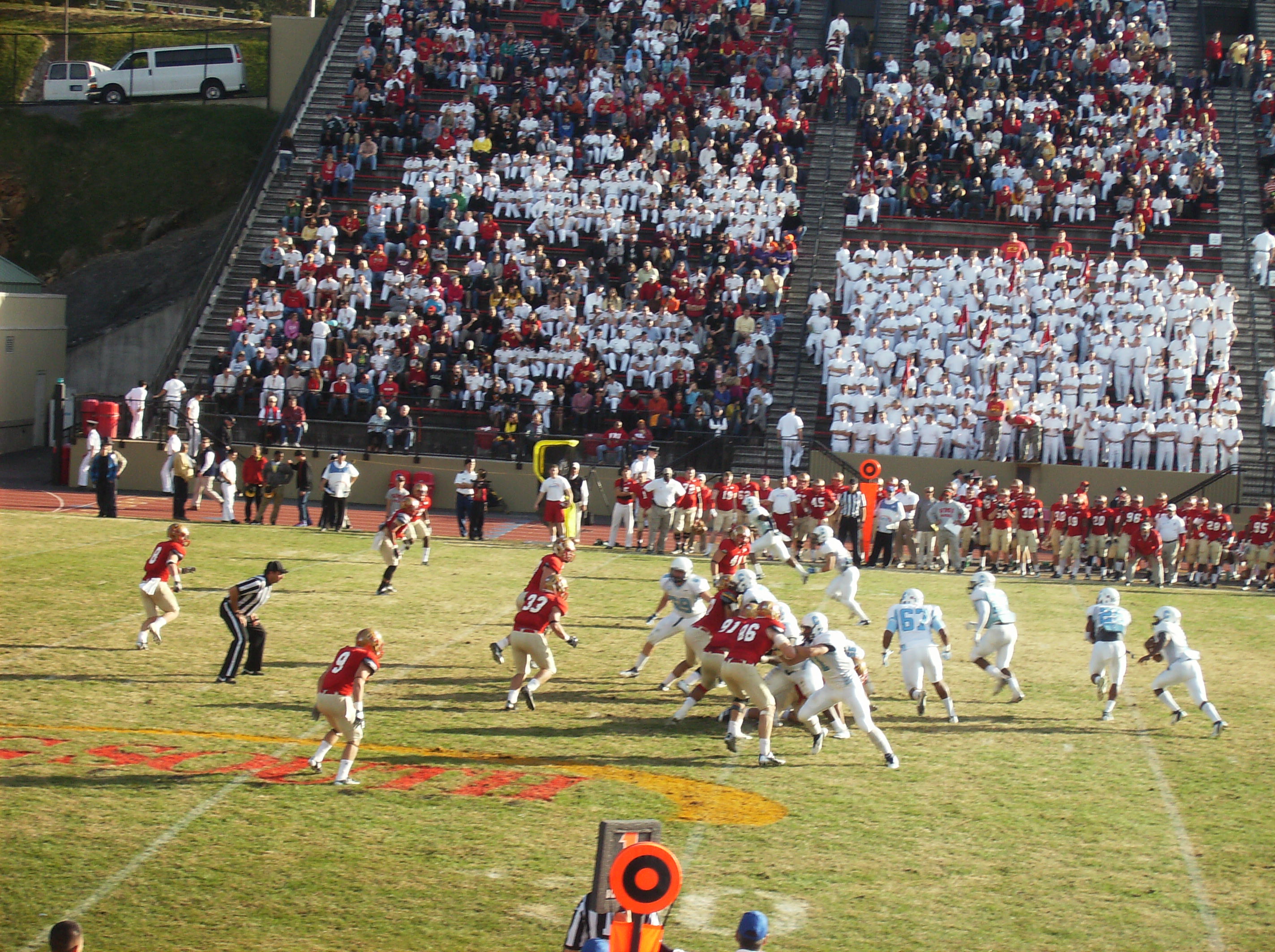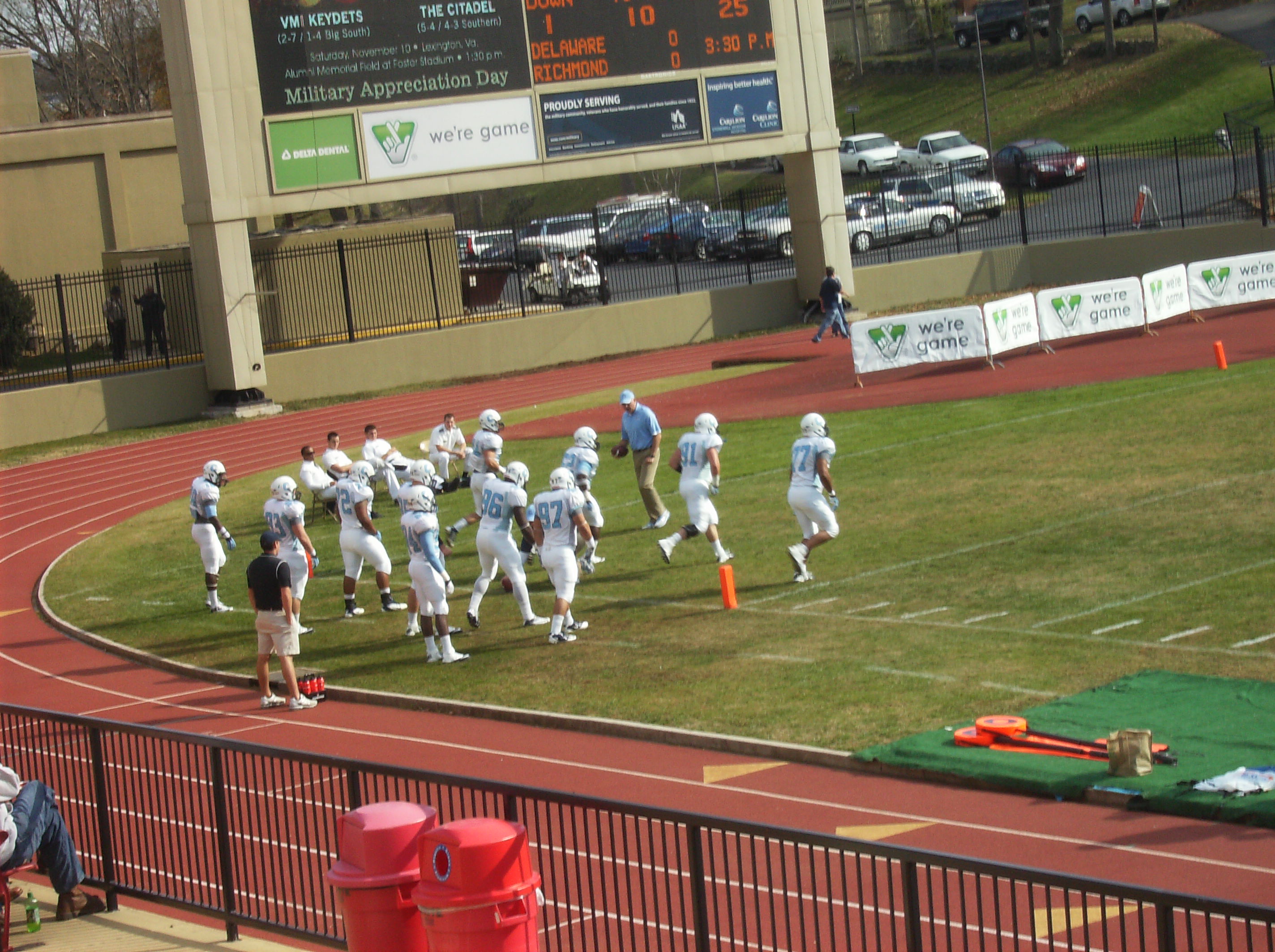 It was nice to hear VMI’s band play on a regular basis during the game, as opposed to the game at Wofford (which has no band) and the games at Johnson Hagood Stadium (where the band is only occasionally allowed to play). However, someone needs to tell the band when to stop. For one thing, I think a VMI false start penalty in the second quarter could be largely attributed to the band playing as the Keydets were about to snap the ball.