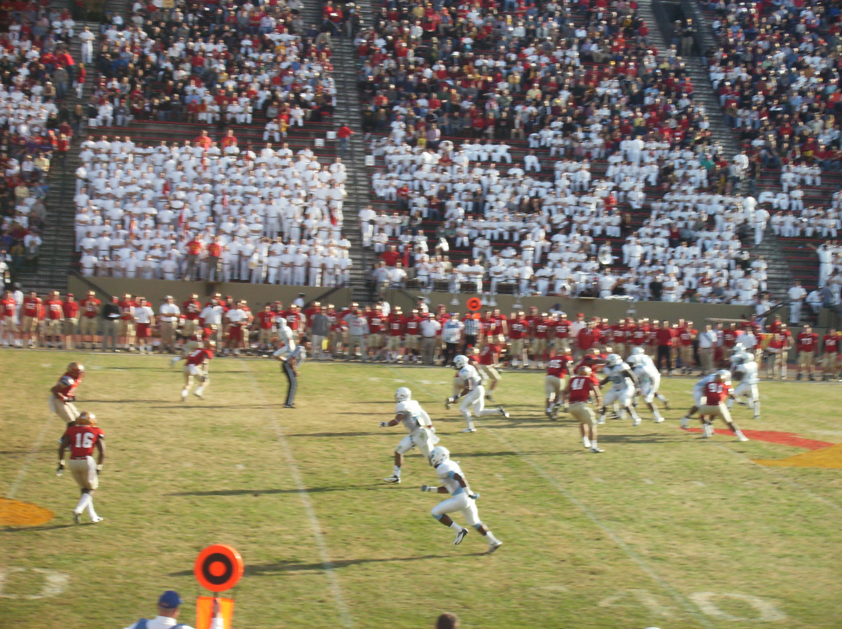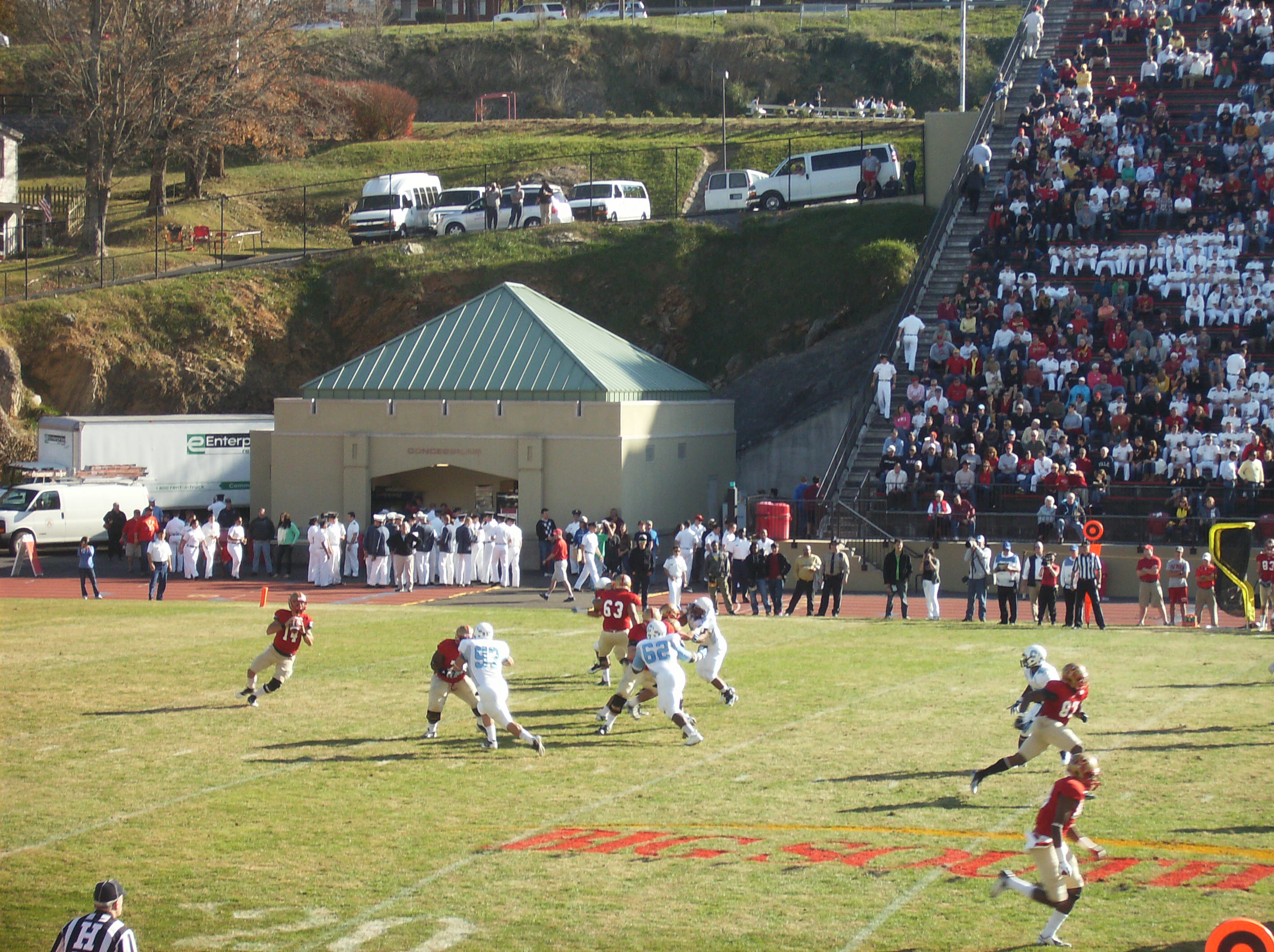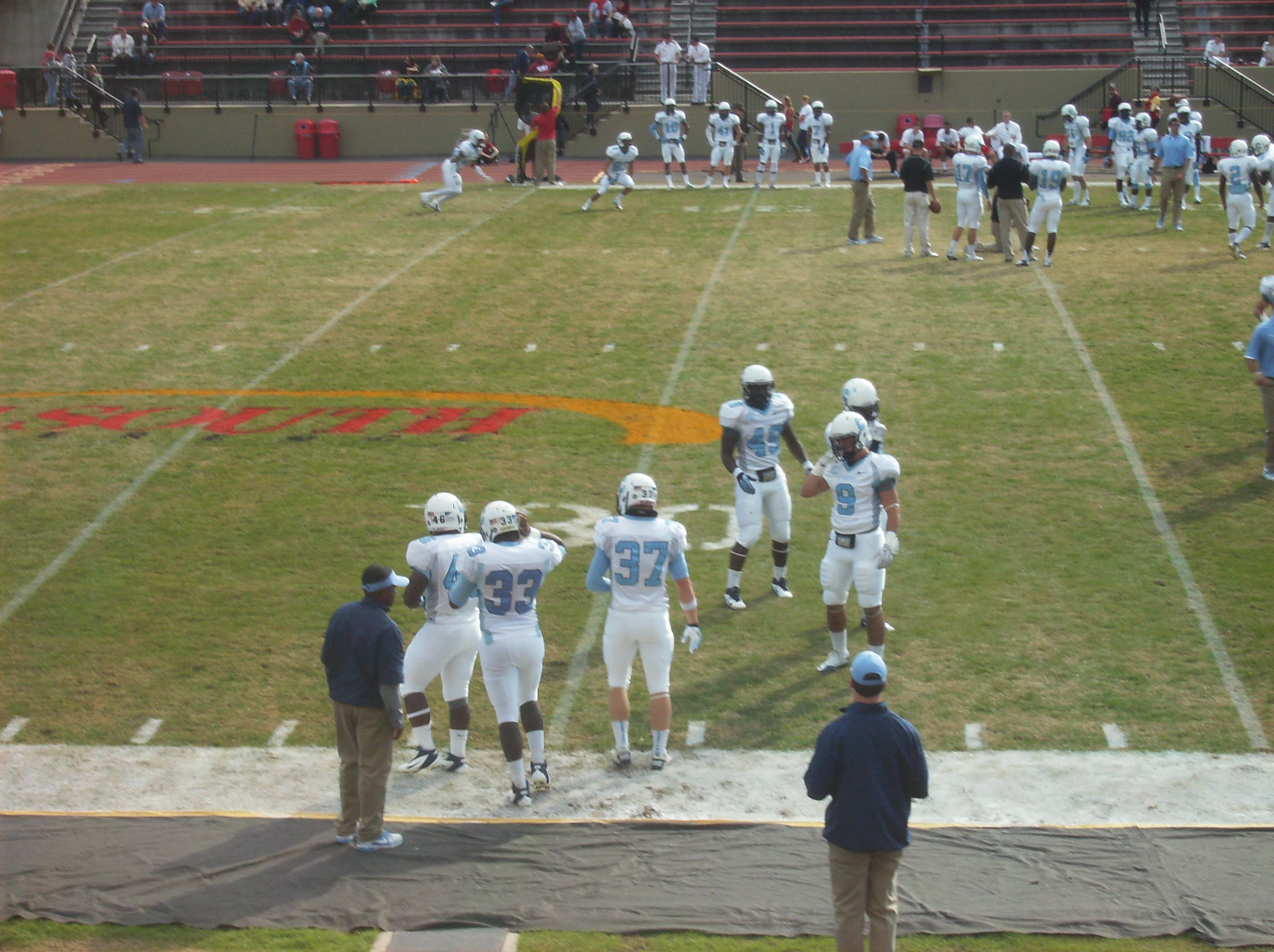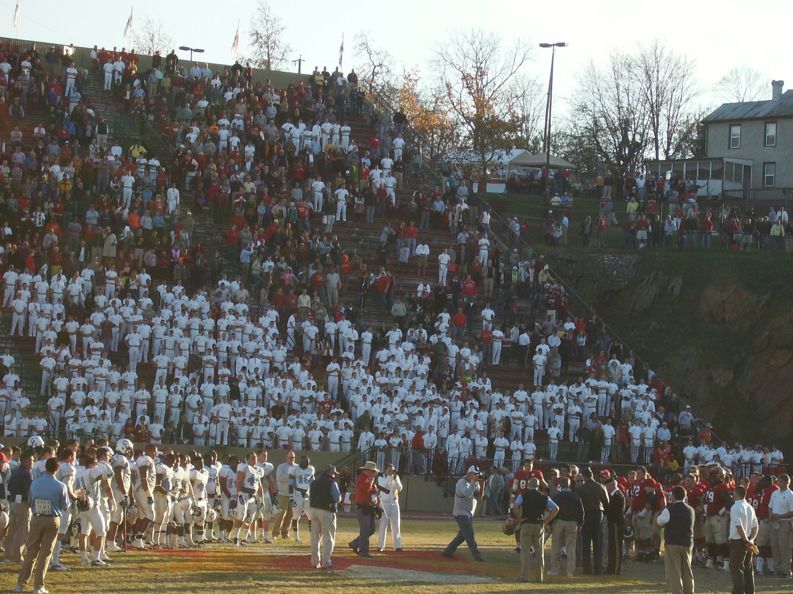 It was nice to hear VMI’s band play on a regular basis during the game, as opposed to the game at Wofford (which has no band) and the games at Johnson Hagood Stadium (where the band is only occasionally allowed to play). However, someone needs to tell the band when to stop. For one thing, I think a VMI false start penalty in the second quarter could be largely attributed to the band playing as the Keydets were about to snap the ball.