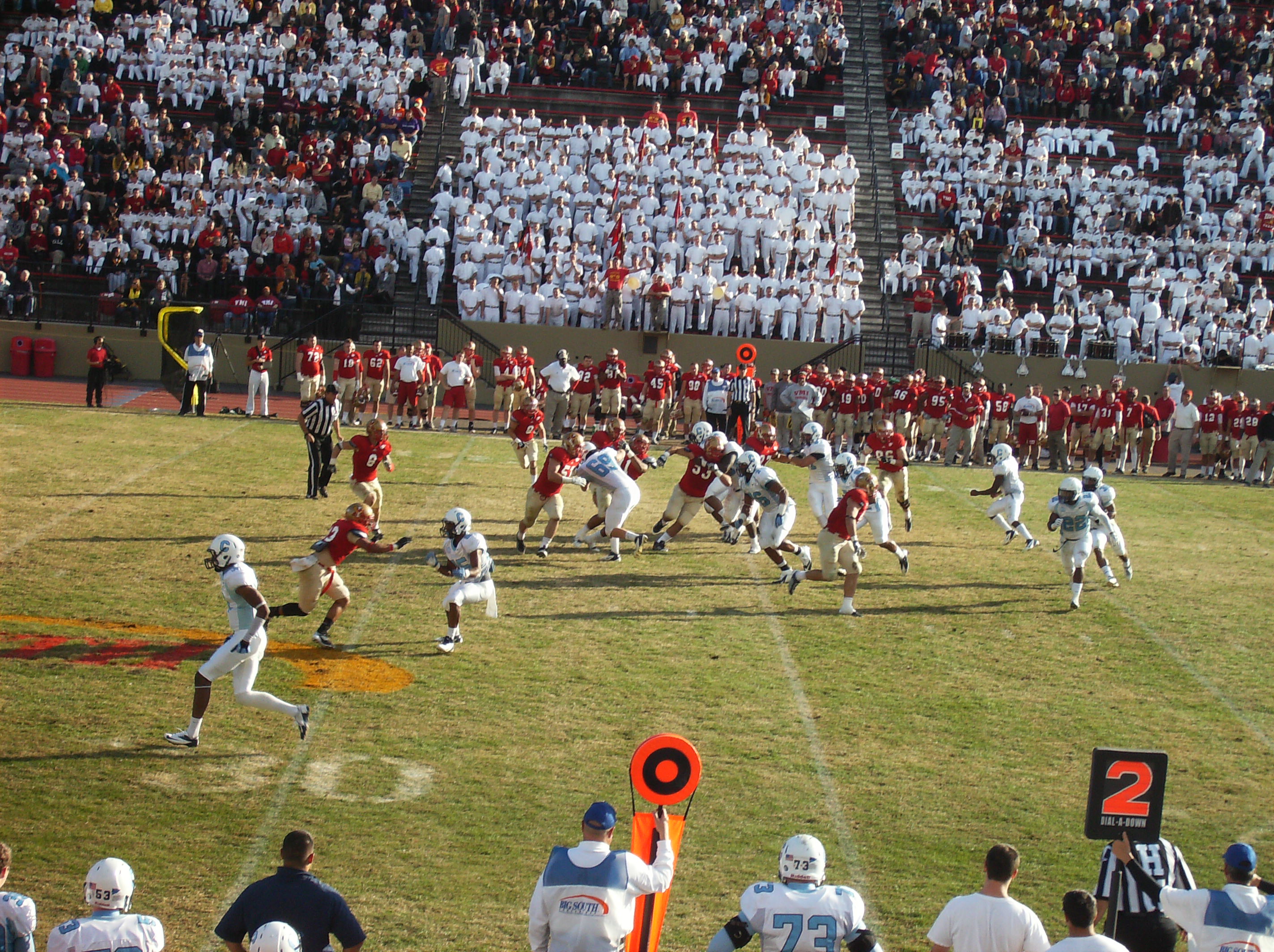 Aaron Miller picked up a first down for The Citadel with 2:42 remaining in the game. VMI was by then out of timeouts.