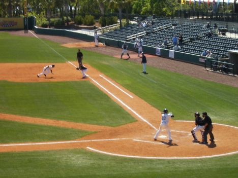 Calvin Orth dives back to first base as Mason Davis stands at the plate.
