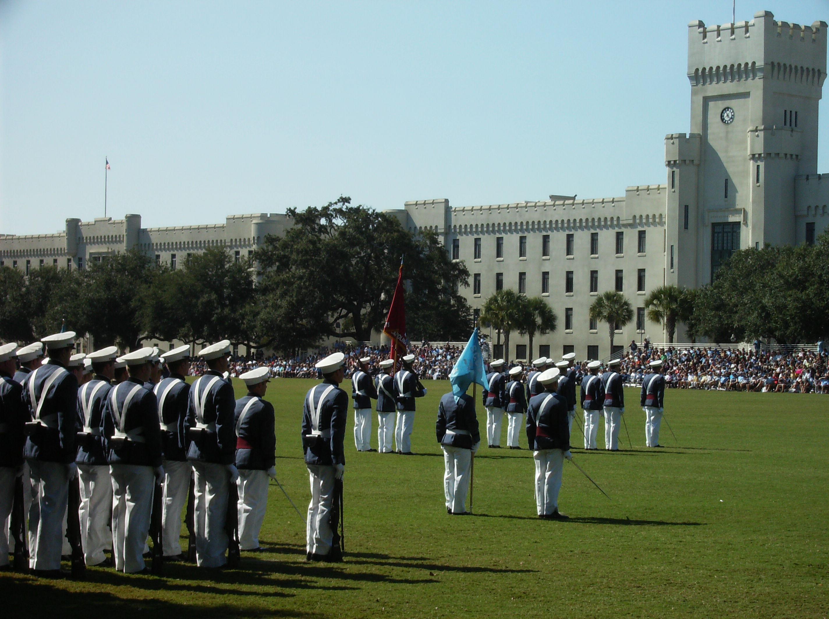 At the Saturday parade during Parents’ Weekend, the freshmen in each company march out separately, after the upperclassmen. From that point forward, they will march in parades as one unit.