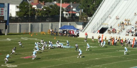 Kameron Bryant completes a pass to Andrew Peacock for a first down. Walker Smith and Julian Baxter combined on the stop.