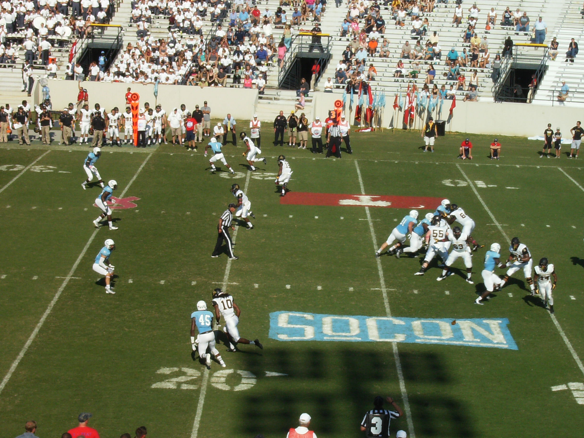 Londry-Jackson (unseen in this photo) would leave the pocket and run for six yards, tackled short of the first down by Tevin Floyd and Walker Smith.