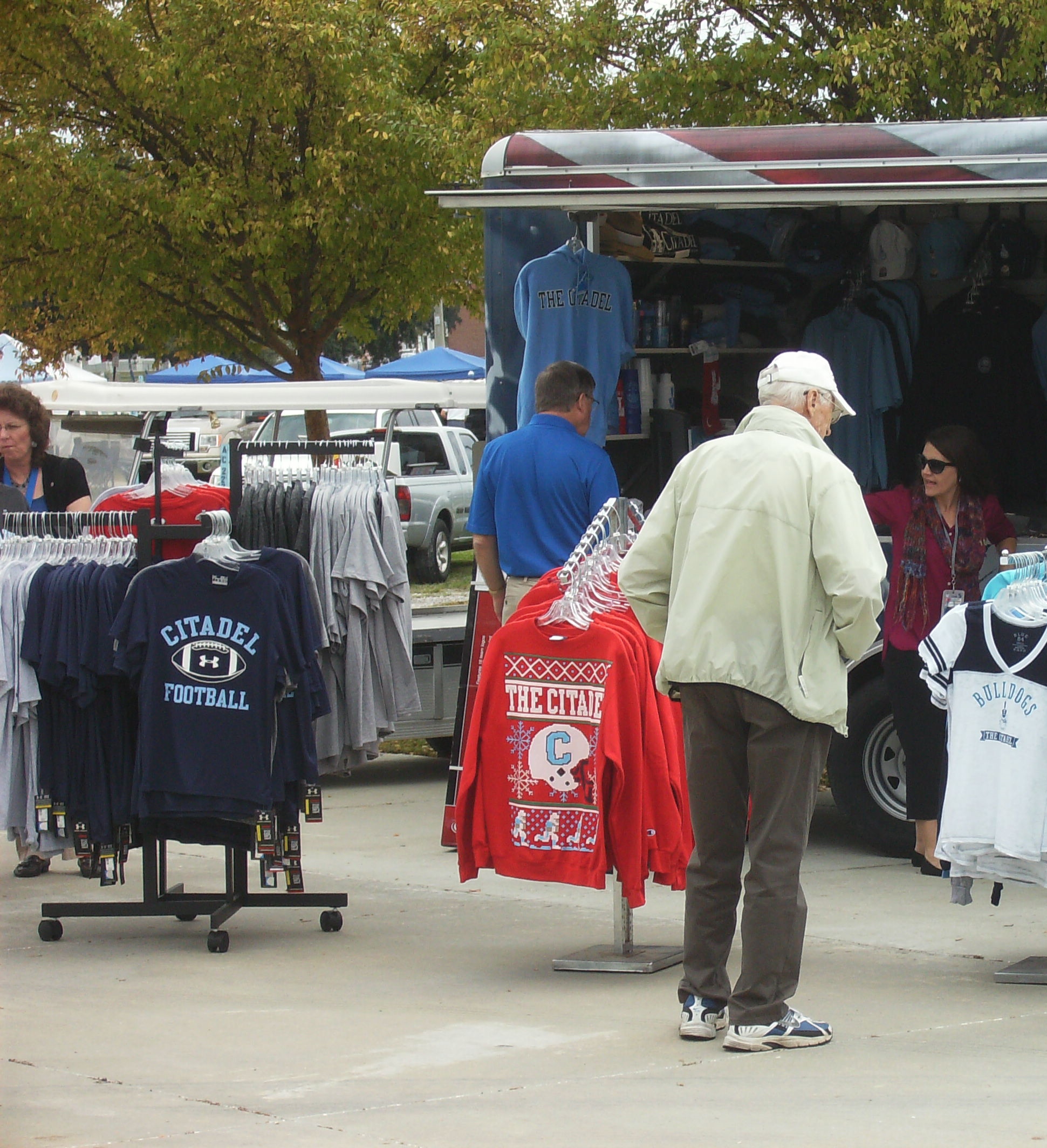The incredible Christmas sweaters were being sold at the auxiliary merchandise stand outside the stadium.