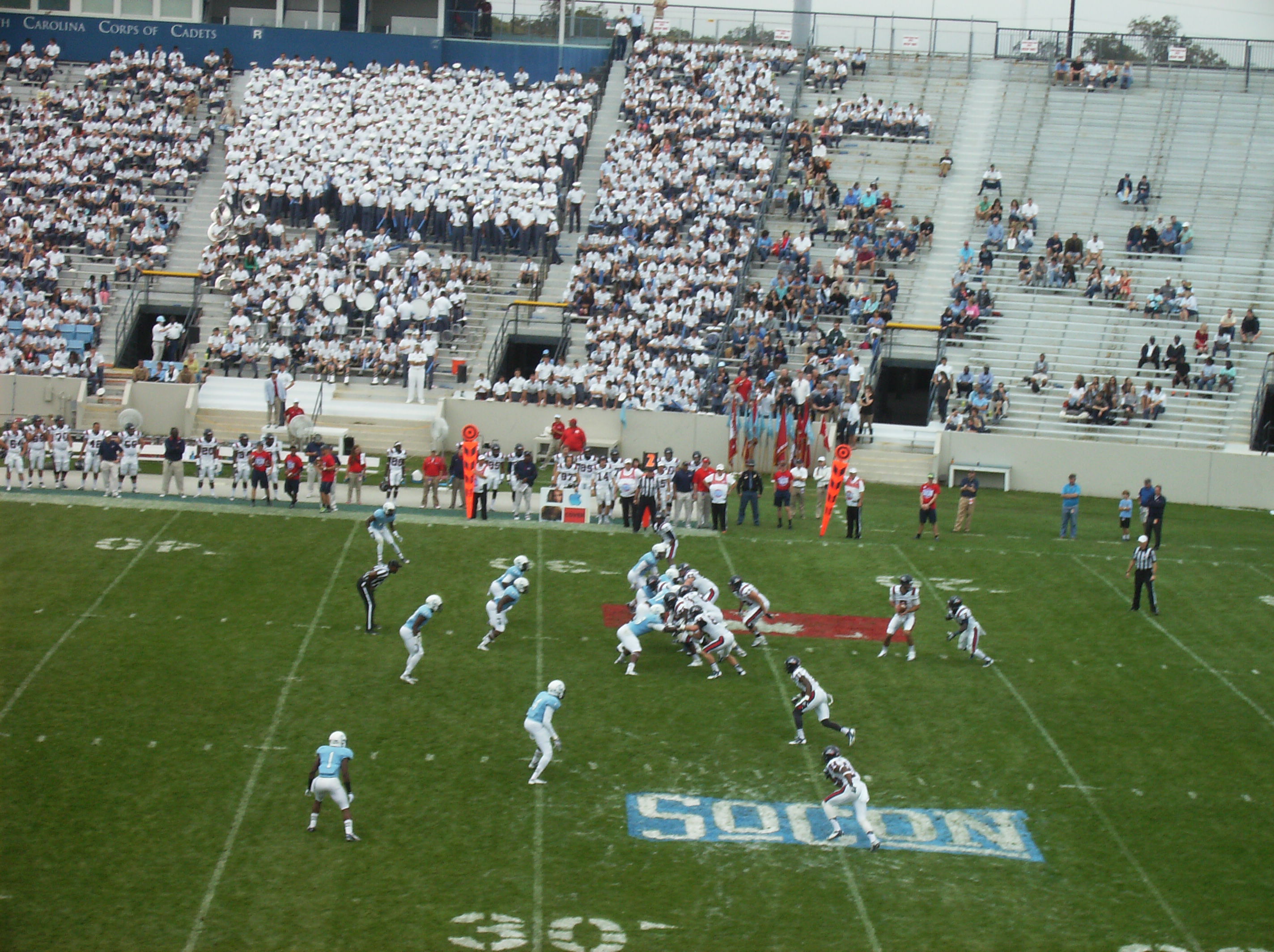 Fabian Truss rushes for ten yards and a first down, tackled by Carl Robinson.