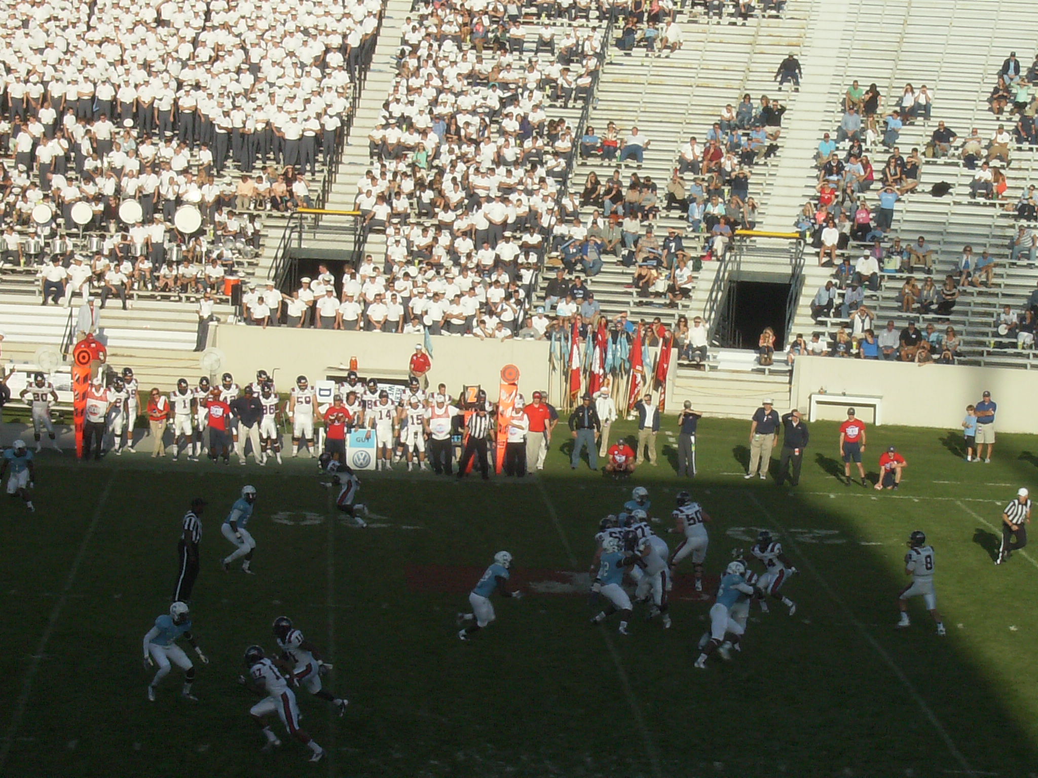 Andy Summerlin completes a pass to Emmanuel Obajimi for 14 yards. Julian Baxter made the stop.