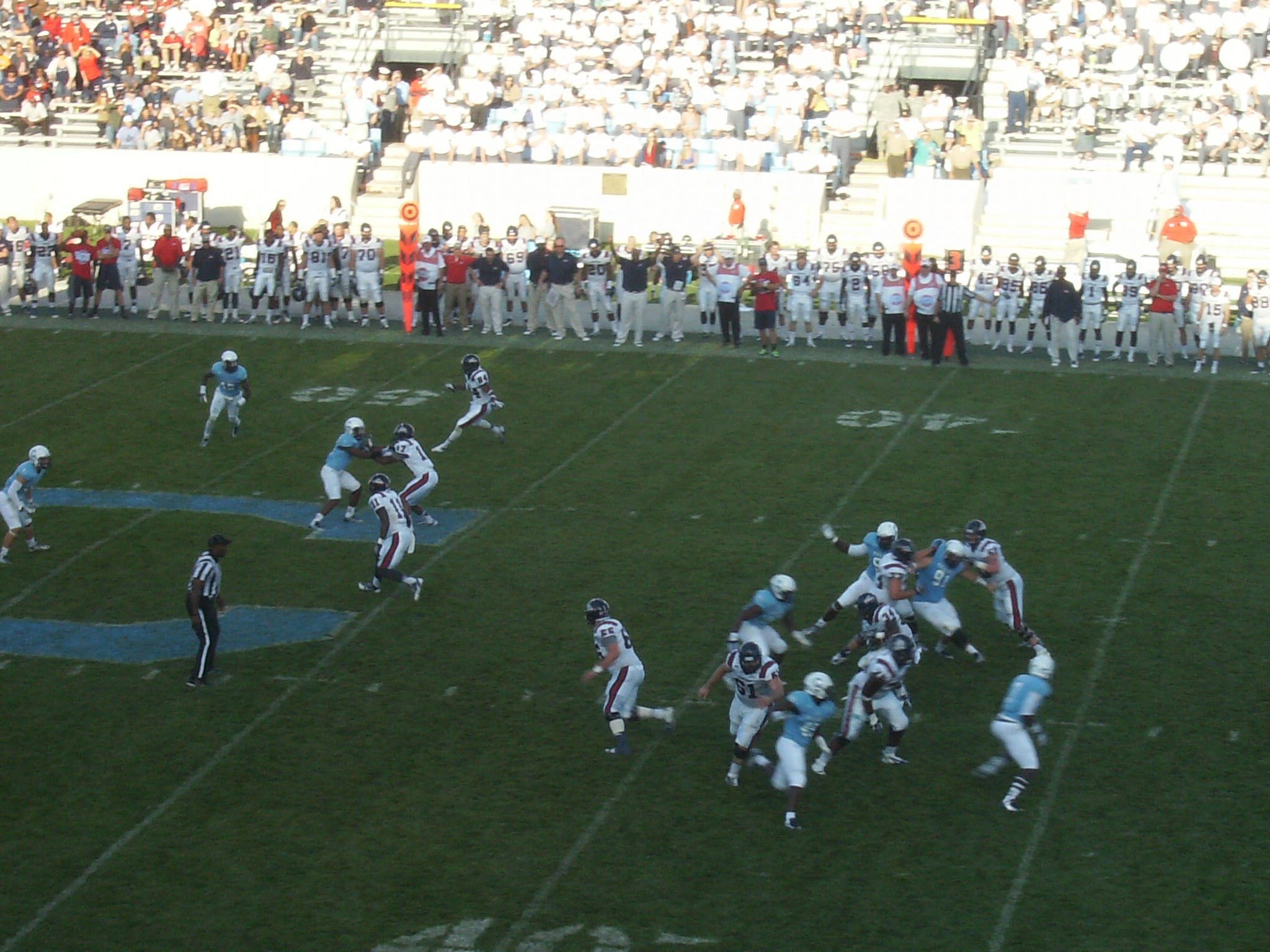 This play resulted in a four-yard pass completion for Samford. Justin Oxendine made the tackle.