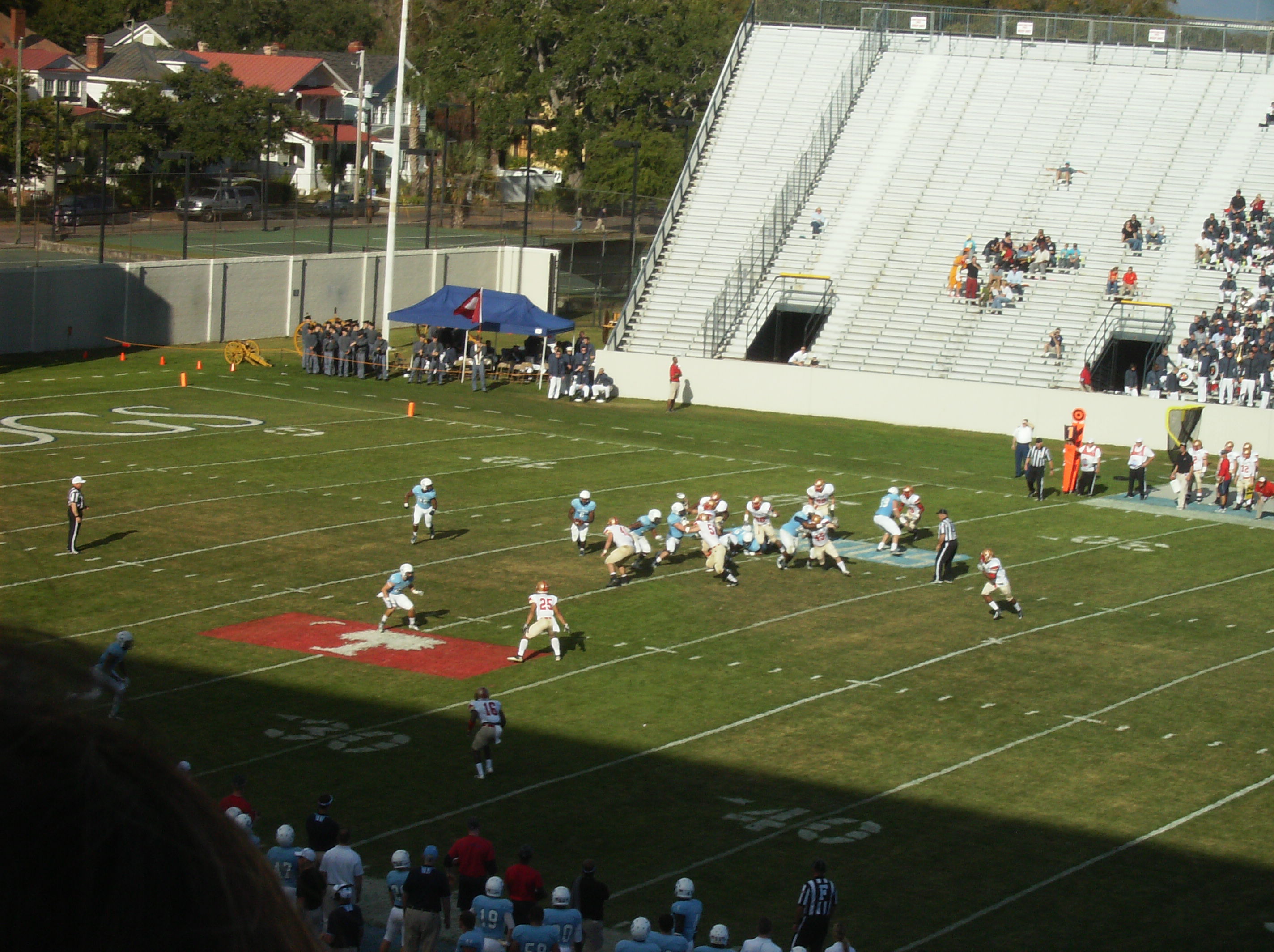 Terrance Martin takes the pitch and rushes for five yards before being stopped by Alijah Robinson and Logan Staib.