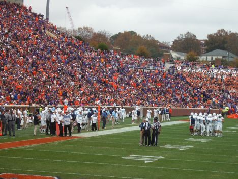 Two plays after this discussion, the officials missed an apparent facemask by the Clemson defense. Hey, they were ACC officials — what can you do.