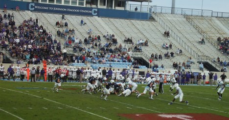 Although it looks like Aaron Miller is handing the ball to Tyler Renew, it is actually Jake Stenson who winds up with the pigskin on this play. Stenson would gain 12 yards and a first down.