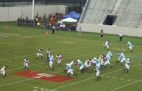 On 2nd-and-1, it’s a pass! Dominique Allen throws the ball to Isiaha Smith (#39), who rumbles for 24 yards, setting up a touchdown on the next play. A good route by Jorian Jordan (#3) helped clear a lot of space for the pass.