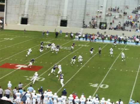 Detrez Newsome with a 12-yard catch-and-run for WCU; Tevin Floyd and James Riley stop him short of the first down.