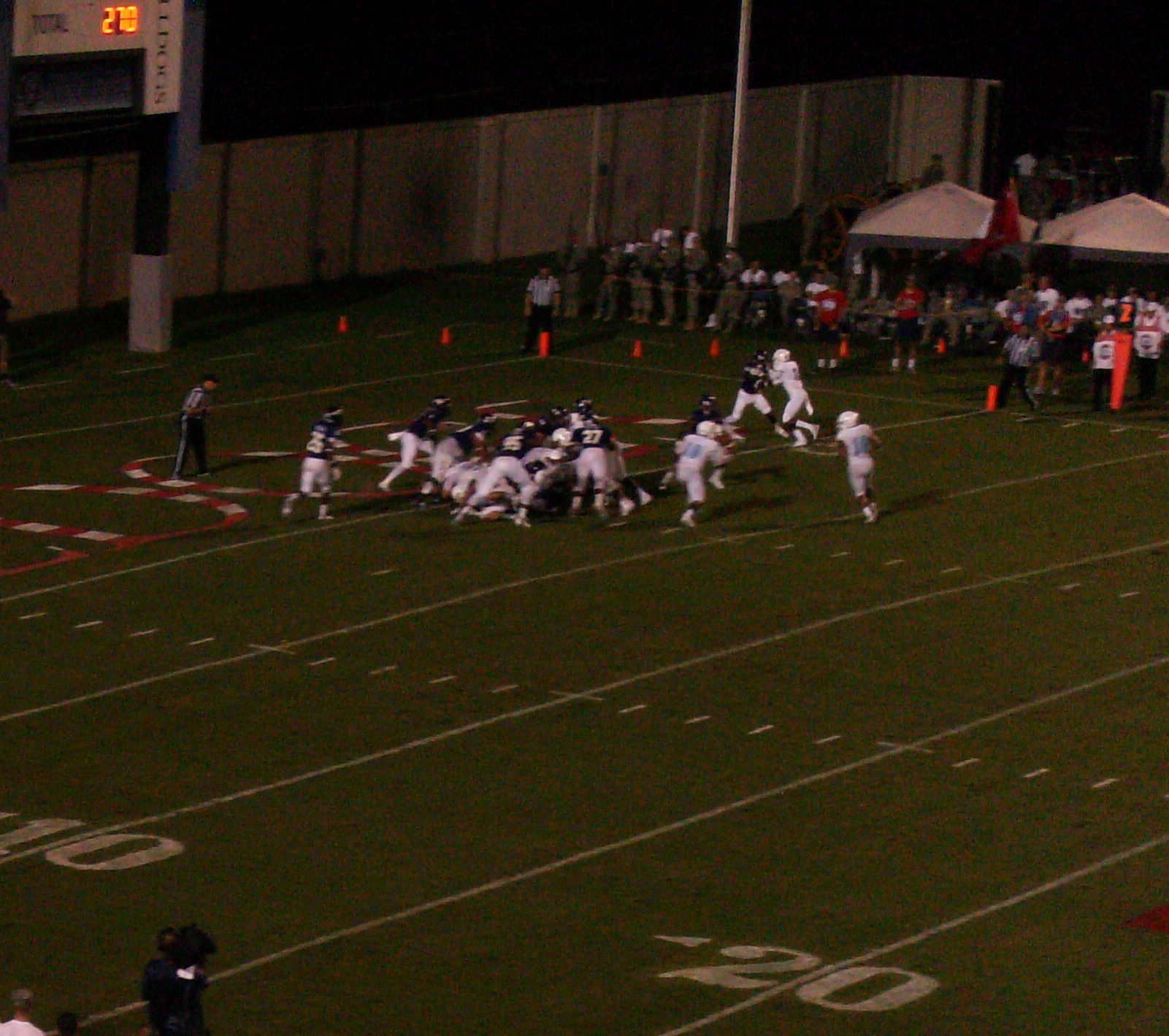 The Citadel catches a break. Dominique Allen’s pitch is a little late, and the ball bounces off Vinny Miller and into the end zone — where it is recovered for a touchdown by Jorian Jordan (#3, blocking the cornerback when the picture was taken).