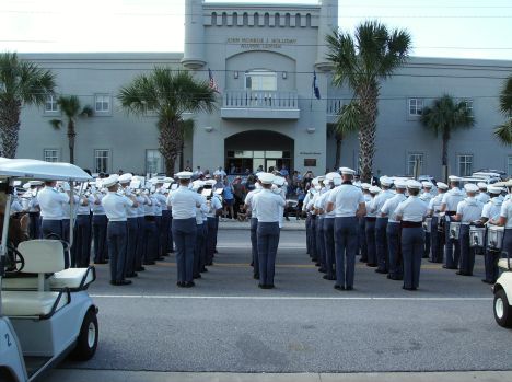 Game review, 2015: VMI » 03006 – Band plays in front of the Alumni Center