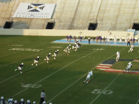 This is the kickoff that actually counted, after the first one was blown dead when the football fell off the tee.