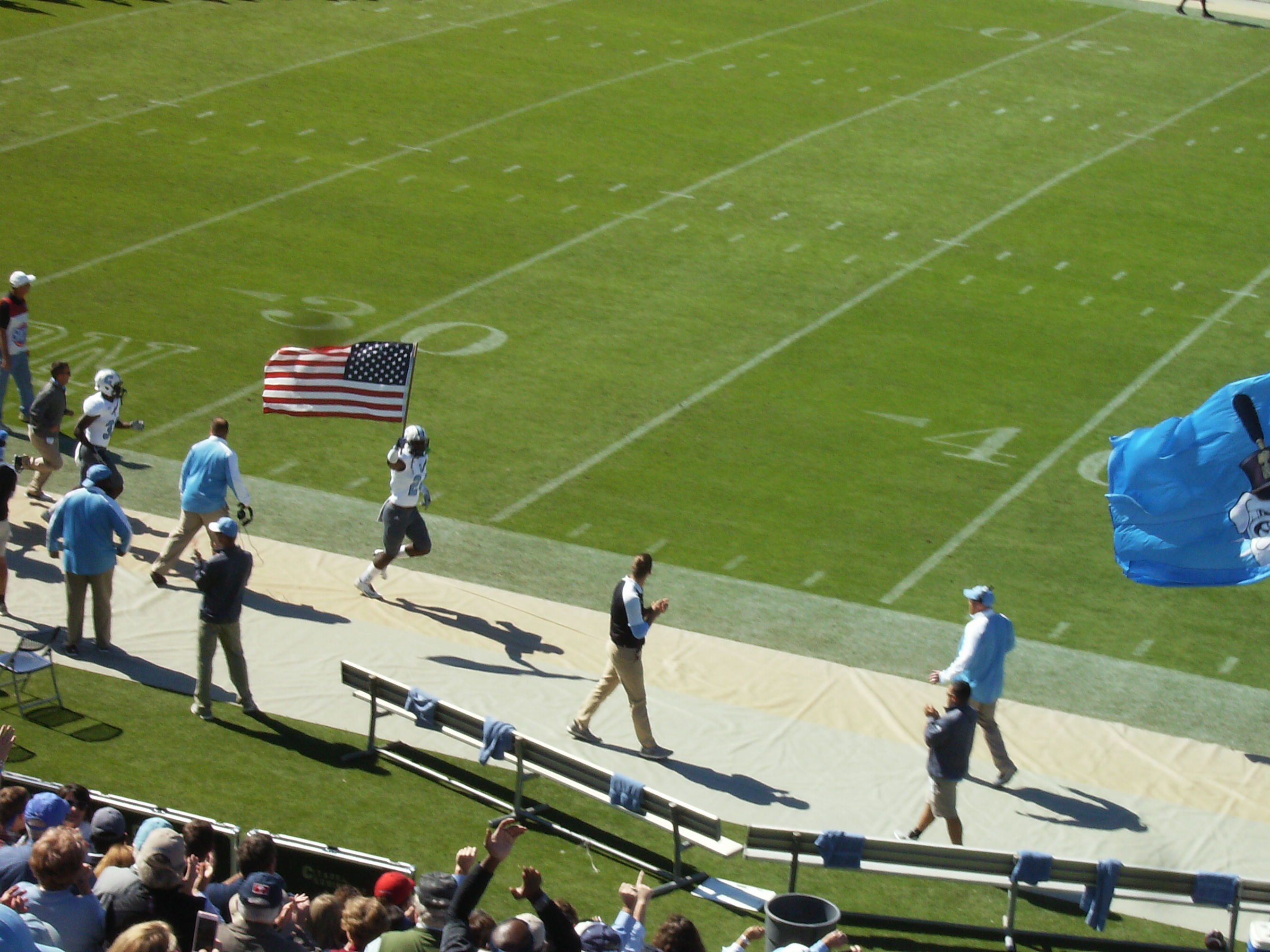 Spartanburg native Aaron Spann carries the U.S. flag onto the field.