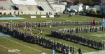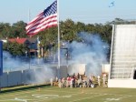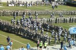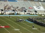 – As the players ran onto the field before the game through the “Block C” formation, they were followed by General and Boo. The two dogs wound up near the home sideline as their respective handlers tried to avoid the cadet and player traffic.