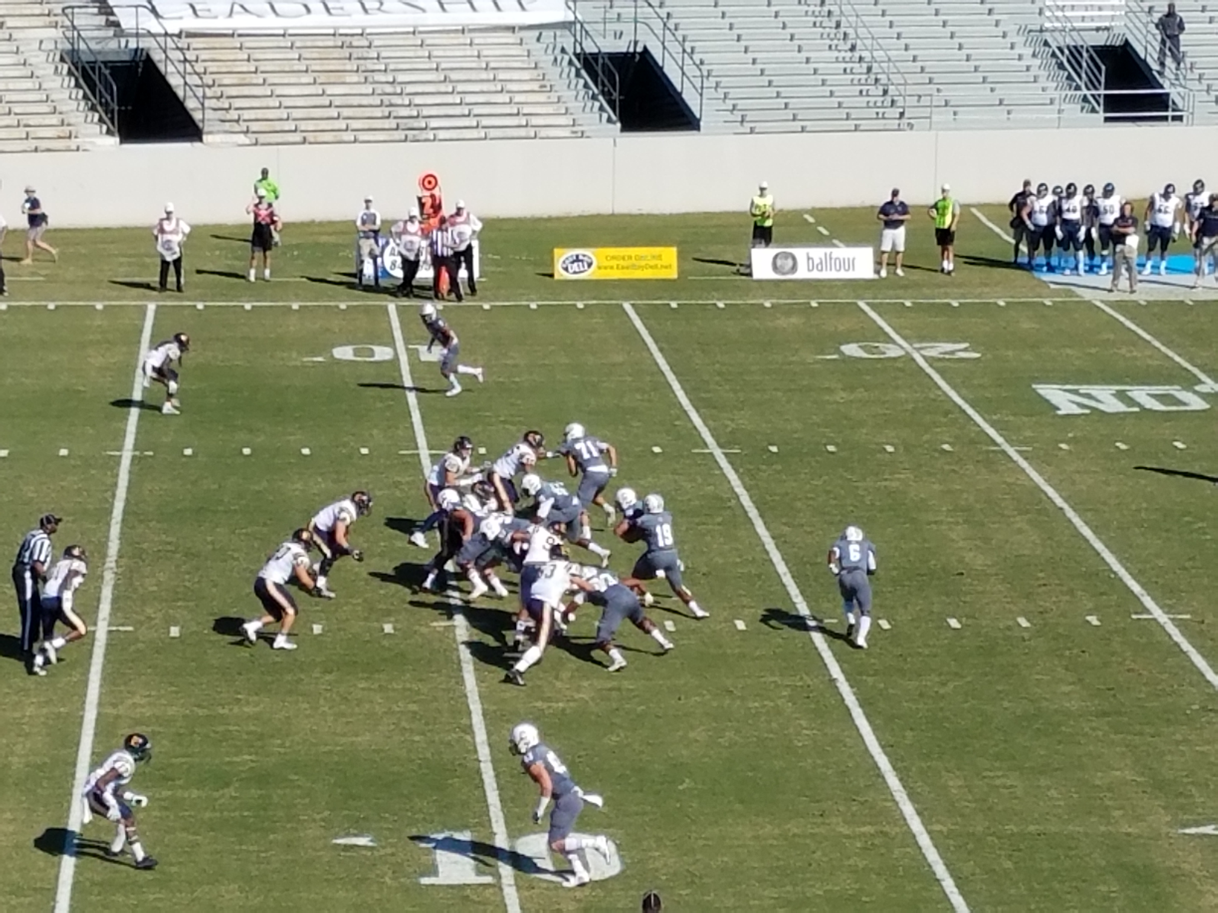 The Citadel’s Tyler Renew carries for 8 yards. Paul Hunter and Dylan Weigel make the stop.