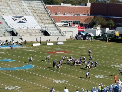 Tyler Renew took the handoff and rushed for a five-yard gain.