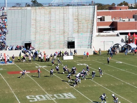 Tyler Renew rushes for 3 yards, tackled by Deion Pierre and Dorsett Johnson.