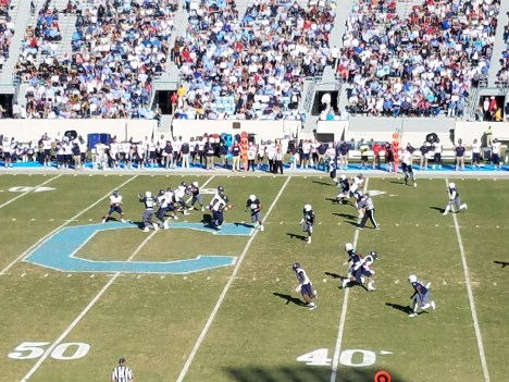 Devlin Hodges completes a pass to Karel Hamilton for 7 yards, stopped by Dee Delaney and Aron Spann.