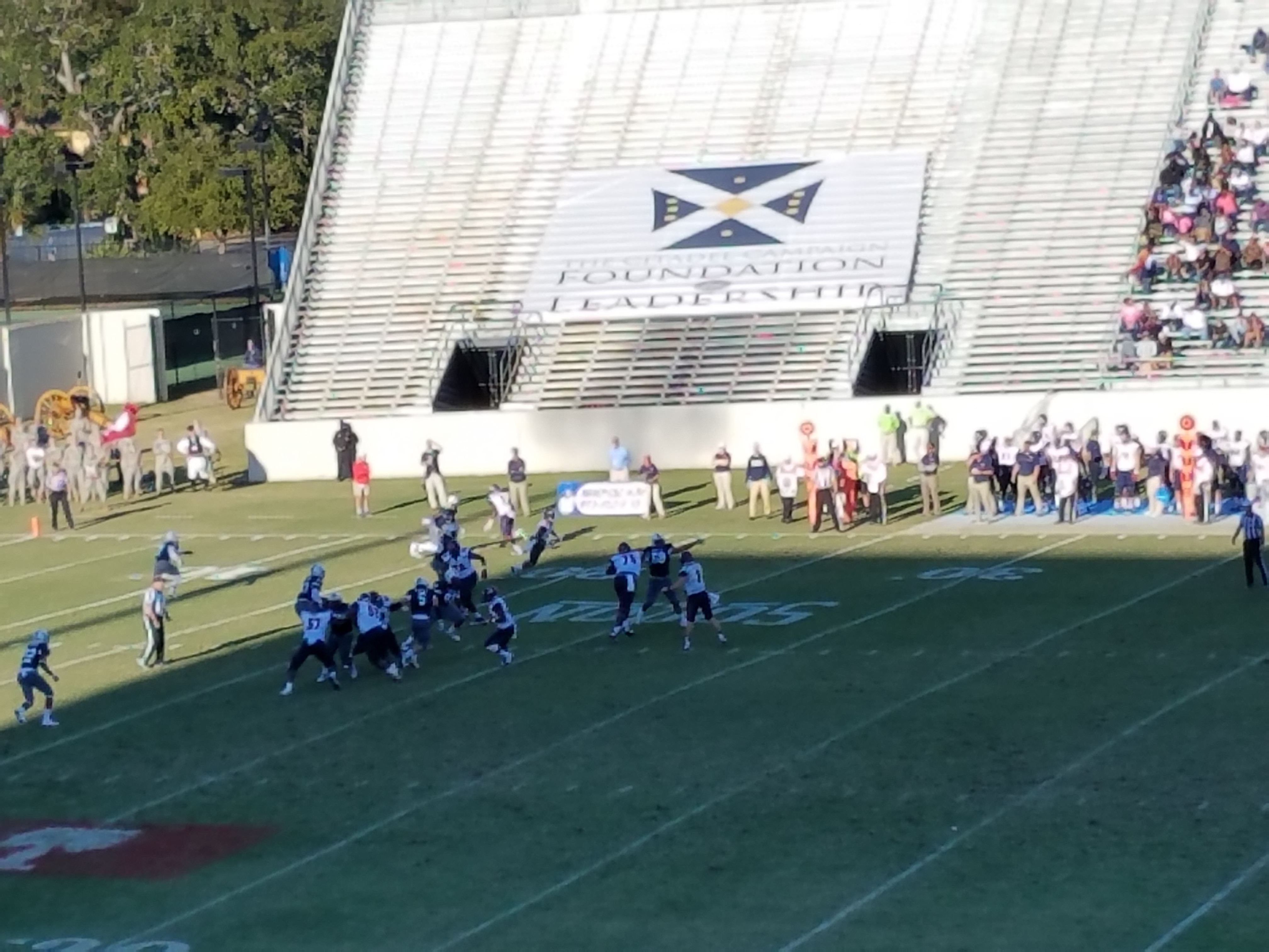 Kelvin McKnight catches a 5-yard pass from Devlin Hodges. Dee Delaney and Kailik Williams combined on the stop.