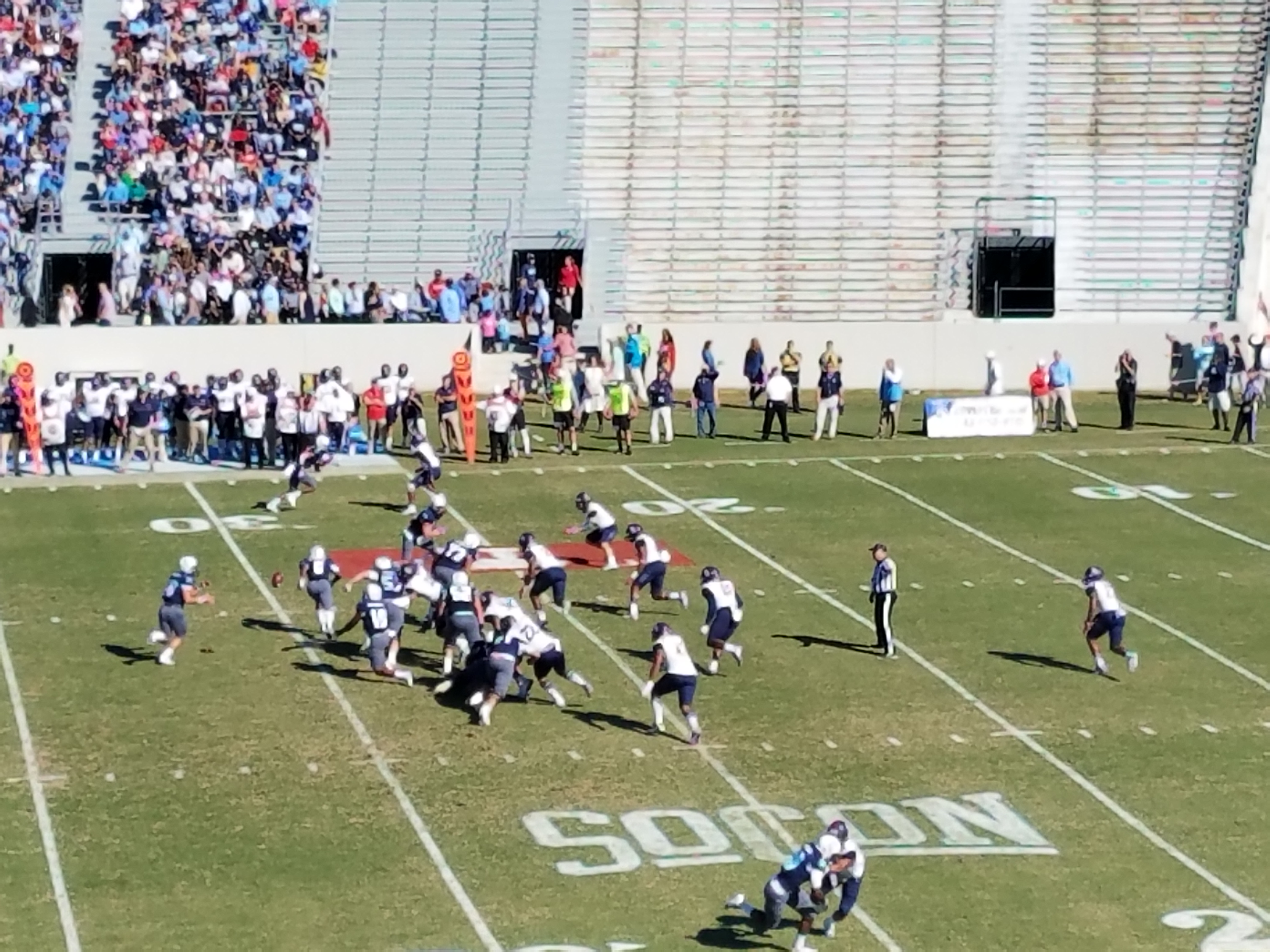 Allen pitches to Renew on the toss sweep for an 8-yard gain and a first down. Aaron Atkinson and Tonne Osaigbovo made the stop.