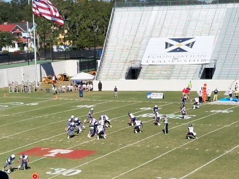 Reggie Williams (obscured in the photo) runs for 15 yards and a first down.