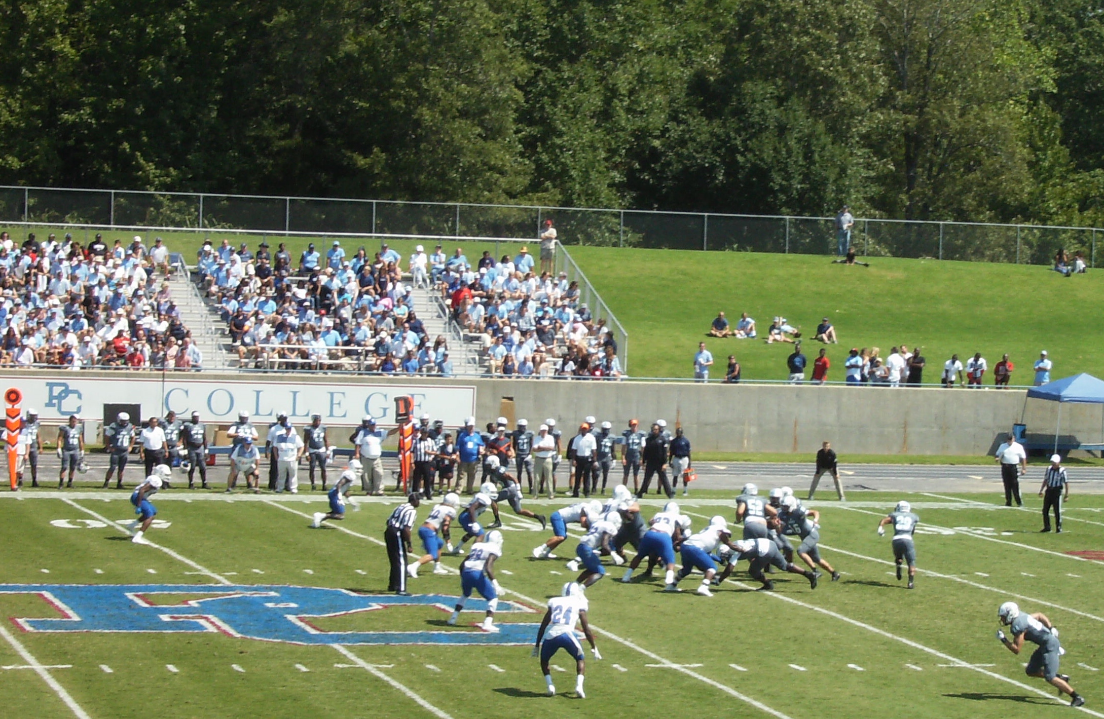 Grant Drakeford carries for two yards on first down. On the next play, Jordan Black threw an excellent pass to Raleigh Webb that went for 57 yards and a TD.