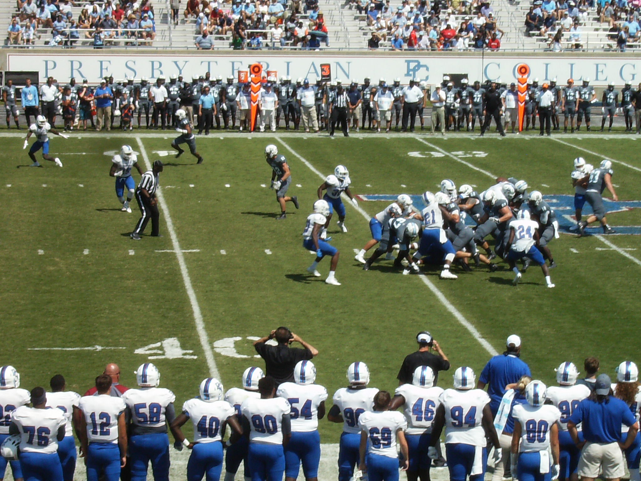 Cam Jackson picked up one yard on this carry. However, PC was called for an unsportsmanlike conduct penalty in the pileup after the play, giving the Bulldogs a first down.