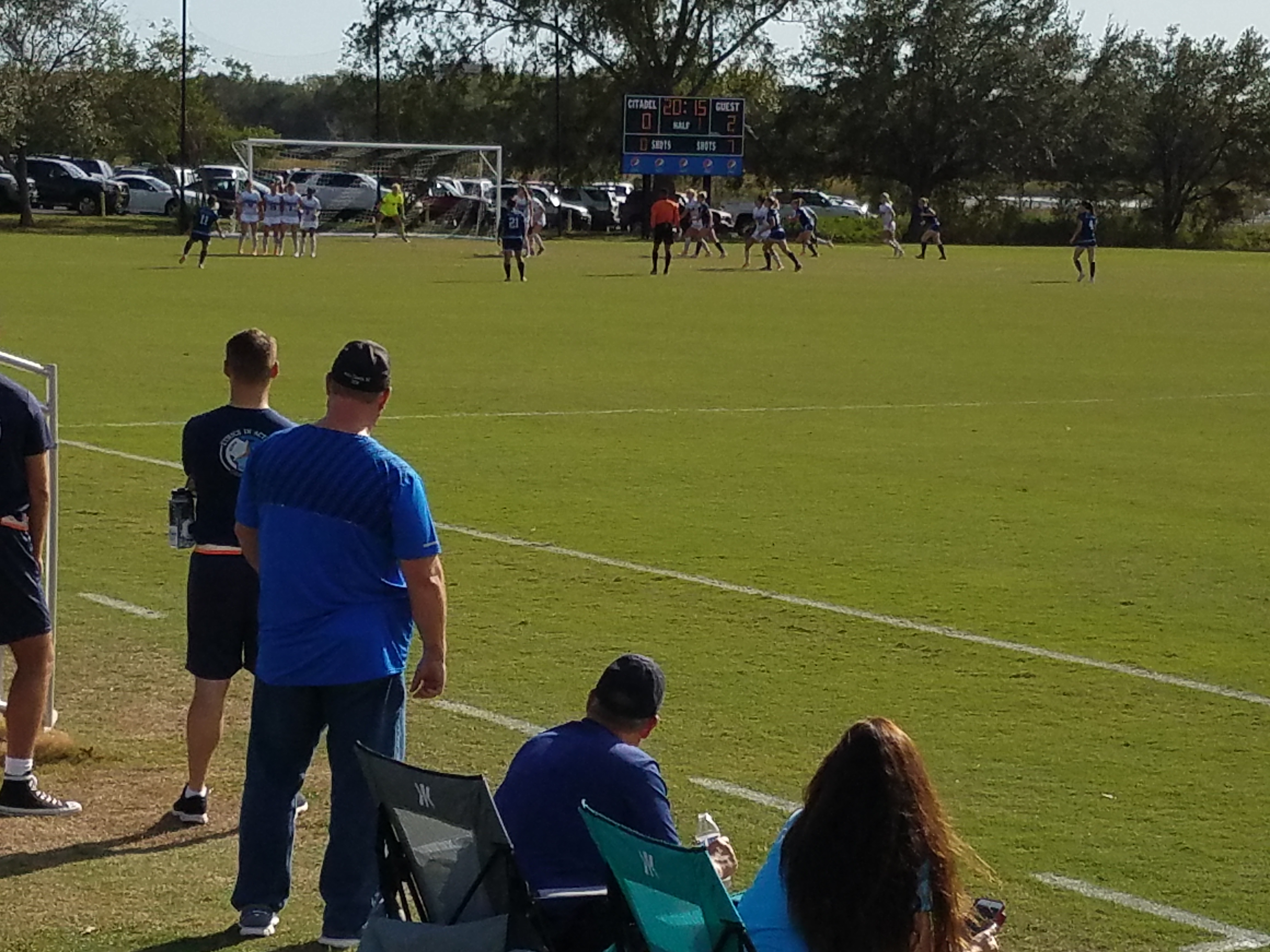 Suzuka Yosue scores The Citadel’s first goal of the game on a free kick. If you look closely, you can just see the ball over the heads of the players in the Paladin wall, heading to the open net.