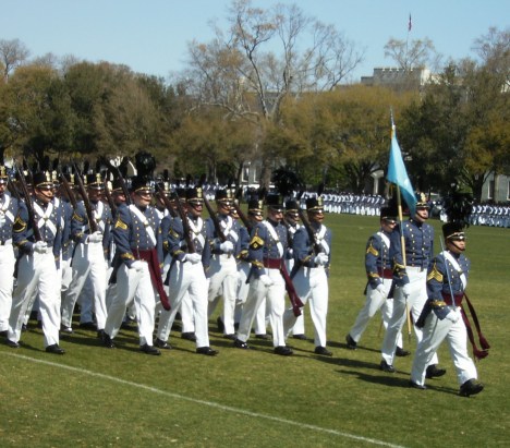 As the most outstanding rifle company over the history of The Citadel, Alpha Company always leads the rifle companies in the parade.