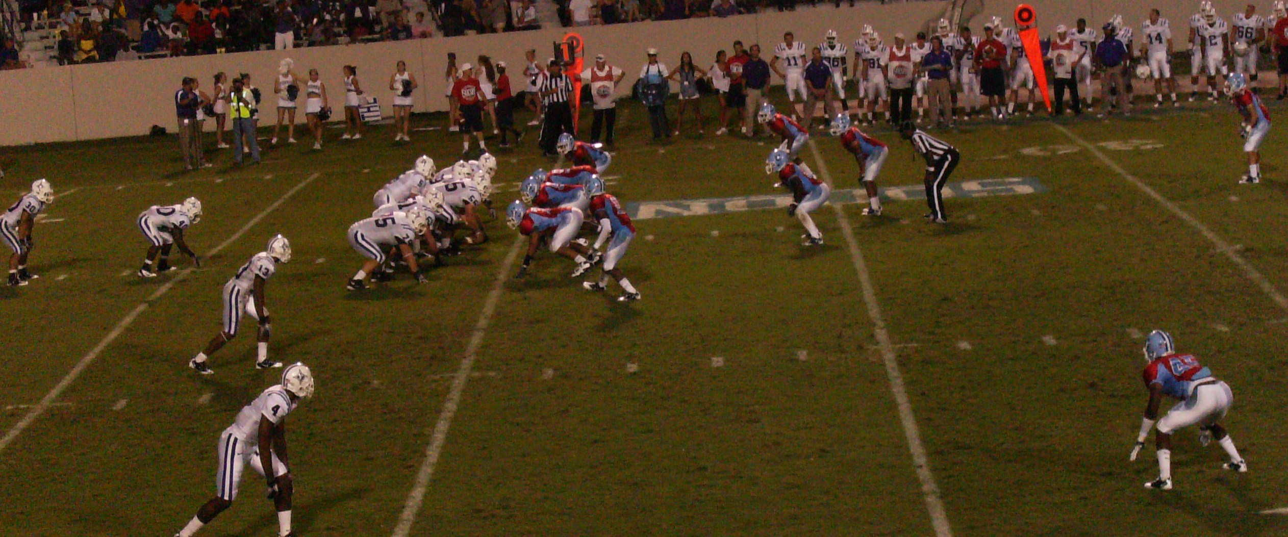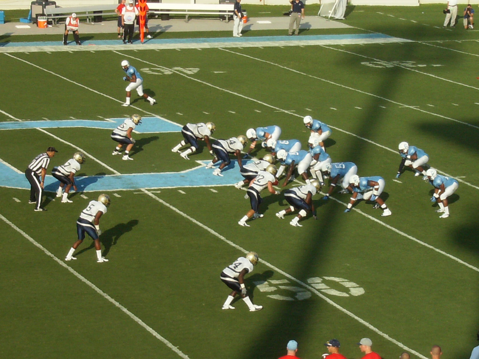 — The officials working the scrimmage wore long black pants.  In August.  In Charleston.  Luckily for them, while it was kind of muggy it was just overcast enough to keep things from becoming truly oppressive.  I left Charleston before the inevitable thunderstorm (at least I assume it was inevitable).