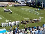 I will say that I like the blue and white smoke as the team runs on to the field, and it shows up fairly well in the pictures.